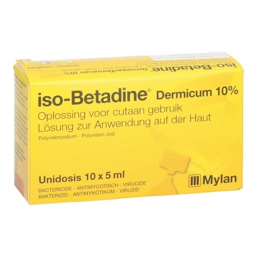 Iso-Betadine® bevat polyvidonjodium, afgekort PVP-I.